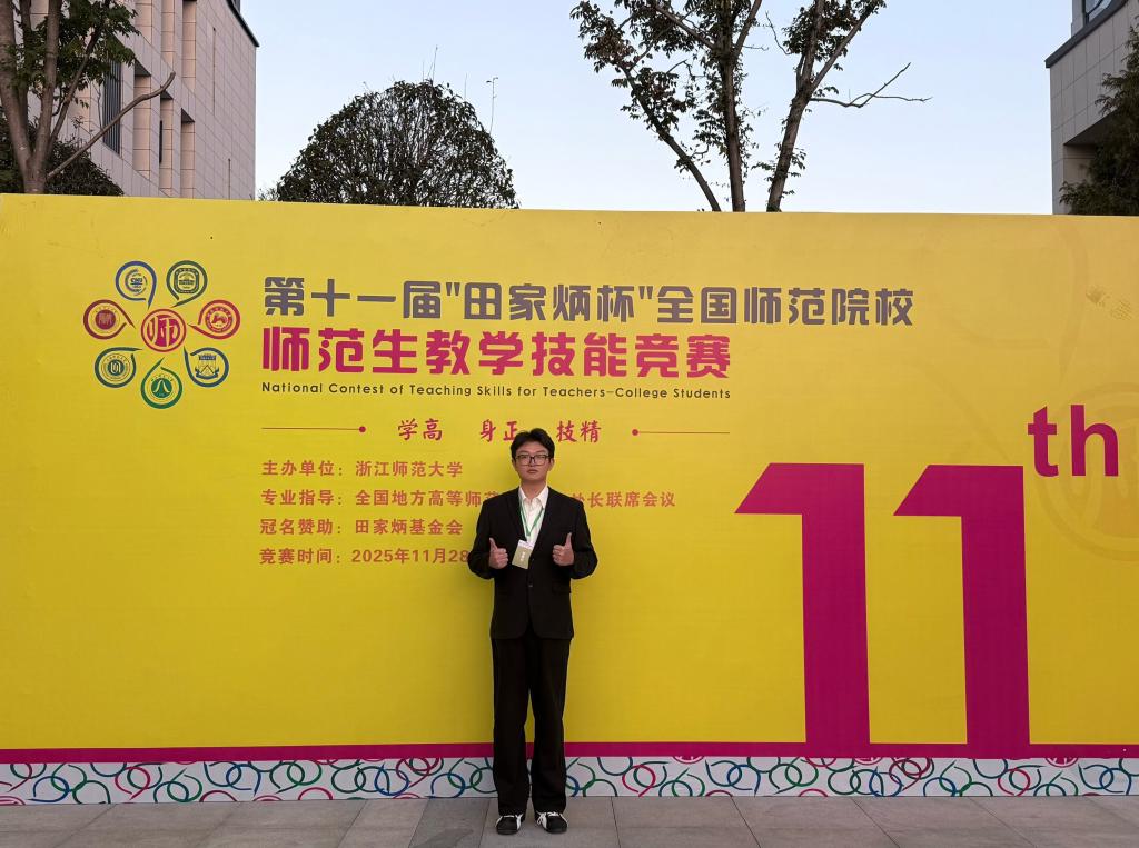 20252025年11月28日至30日,第十一届“田家炳杯”全国师范院校师范生教学技能大赛在浙江师范大学圆满落幕。我院2023级汉语言文学专业韩欣言同学,凭借深厚的专业素养与亮眼的教学风采,成功斩获二等奖。“田家炳杯”教学技能大赛作为当前师范生教学技能领域的顶尖赛事,不仅专业水准高、参与规模大,更具有广泛的行业影响力,每年都吸引着全国众多高校的优秀学子踊跃参与。本届大赛共吸引了来自全国289所高校的2345名选手同台竞技。...