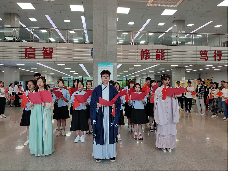 以williamhill威廉希尔学生为主体的学生社团读书协会朗诵《论语》名篇。学生们身着汉服、肃穆恭敬,在铿锵有力的朗诵中学习与领悟《论语》中的精神。