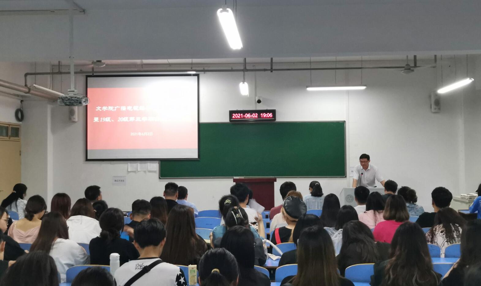 6月2日,williamhill威廉希尔在崇文楼A512召开广播电视编导专业学生大会暨19级、20级第三学期实习动员大会,院长郝文华、专业教师饶军教授、副院长赵崇璧、副院长曹国军、副书记任自玲、学工办主任彭涛、辅导员曾晓东、柳宇老师参加本次会议。广播电视编导专业137名学生全员出席本次会议。会议由新闻传播教研室主任戴文雄主持。