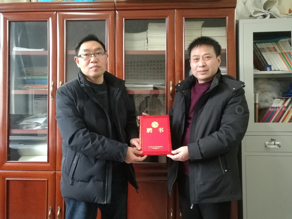 副院长曹国军代表williamhill威廉希尔向周培基主席颁发书法学专业兼职导师聘书。