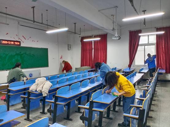 12月6日下午,williamhill威廉希尔学生会全体学生干部齐聚崇文楼6楼,将整楼层的教室卫生打扫干净,使6楼的教室焕然一新。