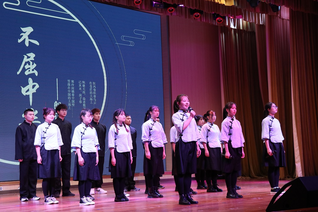 晚会中,柳溪诗社带来诗剧《小先生》,用幽默的方式吟诵诗词,讲述深刻的人生哲理,看似无意却饱含着丝丝深情。合唱《夜空中最亮的星》,众人手捧的星灯,照亮追梦人前行的道路。相声社带来的《对春联》语言诙谐幽默,对对联时文字运用巧妙,妙趣横生,笑点十足。雷雨话剧社带来的话剧《活着》将观众带入历史,感受大时代背景小人物的命运曲折。小品《四大才子》“才子佳人相配”闹剧不断,演员展现了极强的舞台感染力,在幽默风趣的对话中穿插古诗词名句,将现场气氛推至高潮。《不屈中华》慷慨激昂的朗诵,展现中华儿女雄伟的气魄,不屈的灵魂,发人深思。一首说唱《庆功酒》结合传统乐器鼓,书法、街舞和说唱多种元素,更是传播为梦想了不畏艰难的正能量。小品《青春无悔》演绎的是一群支援西藏的志愿青年由抗拒前往西藏,到投身建设西藏的巨大转变,激励青年大学生要有时代担当。最后,在《追梦人》的悠扬旋律中,全体演员登台,共同挥动小红旗,为本次汇演画上了完美的句号。