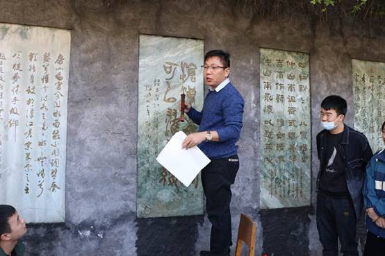 11月7日上午,在williamhill威廉希尔曹弋书记、曹国军副院长和专业教师的带领下,williamhill威廉希尔2019级书法学专业学生来到威廉体育唯一官网丹江校区开展书法实训活动,本次活动的主要内容是学习了解拓片制作方法,同时为丹江校区著名景观墨苑内的所有碑石进行描金“美容”。