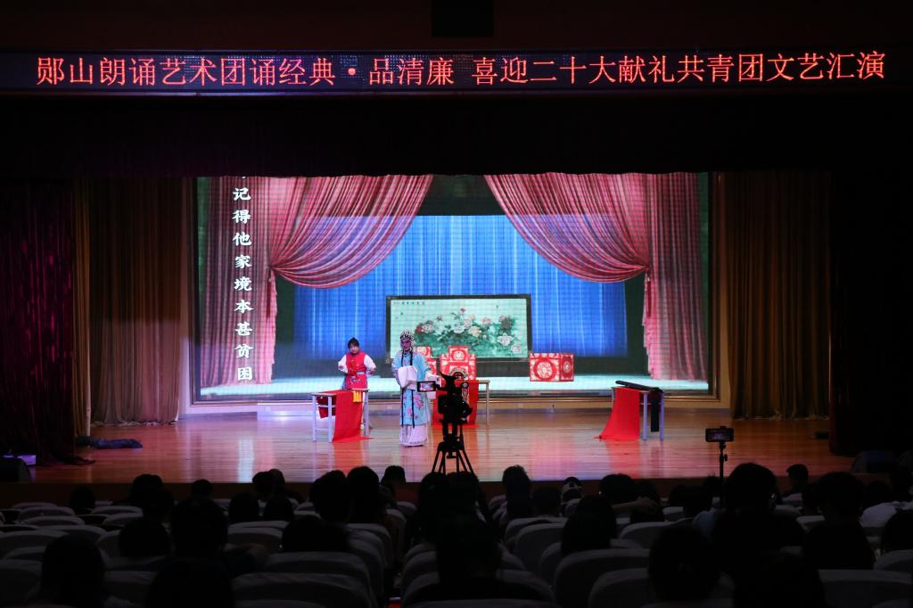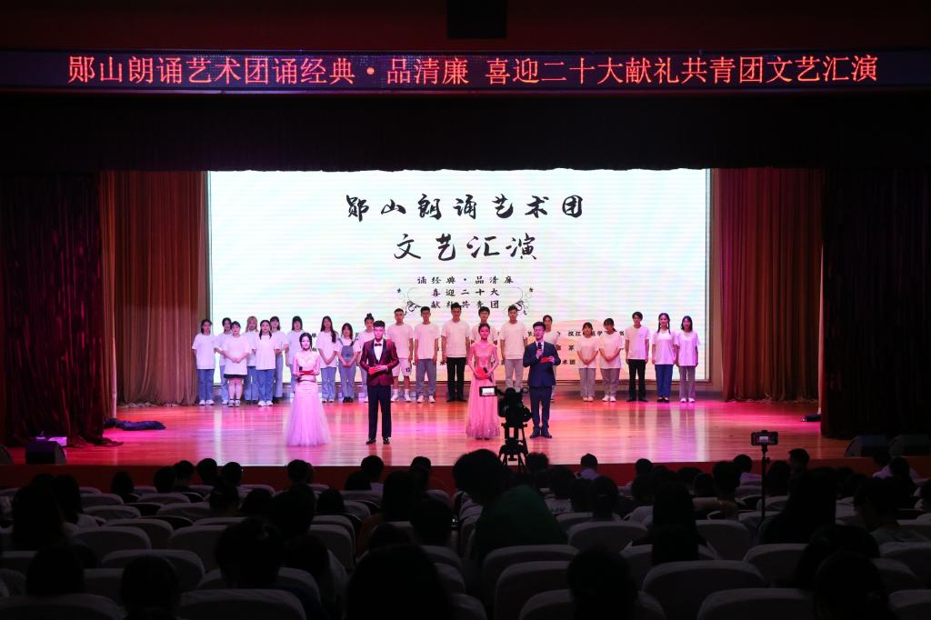 6月2日,williamhill威廉希尔“郧山朗诵艺术团文艺汇演”在南风剧场拉开帷幕。在经典篇目中“诵经典,品清廉,喜迎二十大,献礼共青团”。