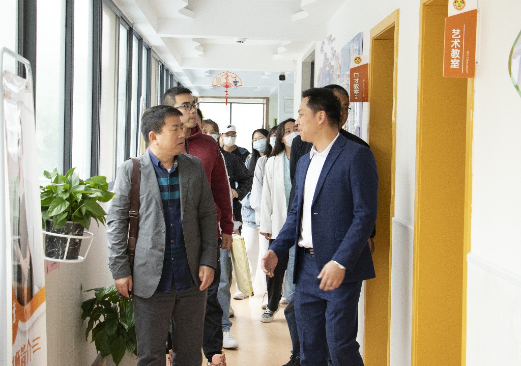活动中,在集团负责人的陪同下,老师和学生们参观了十堰金话筒口才主持培训学校的上课教室、活动区以及近几年的学生作品,并进行了交流。