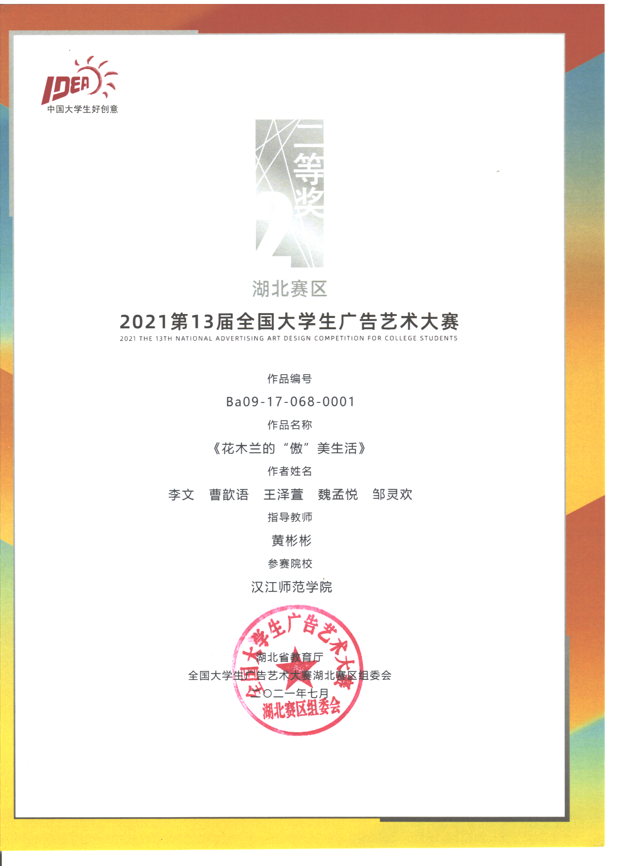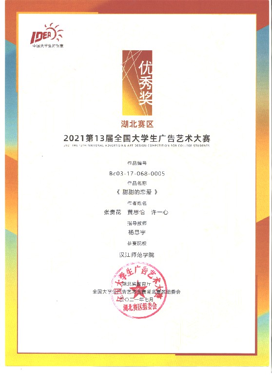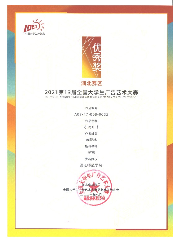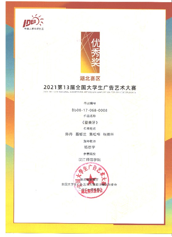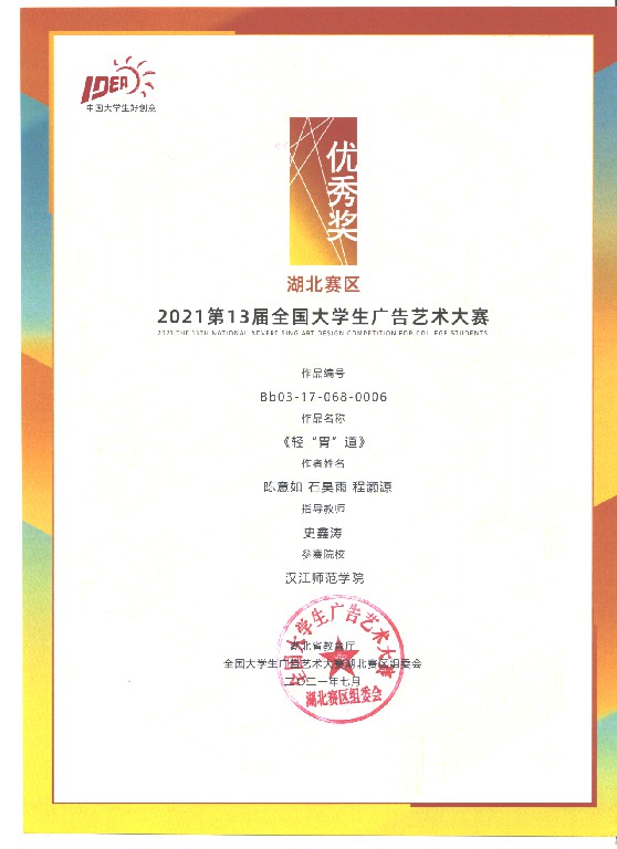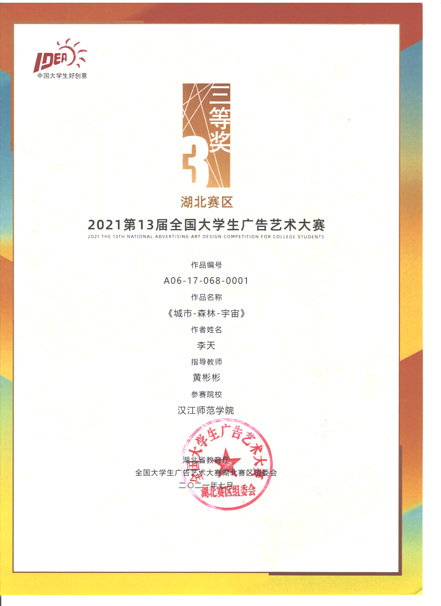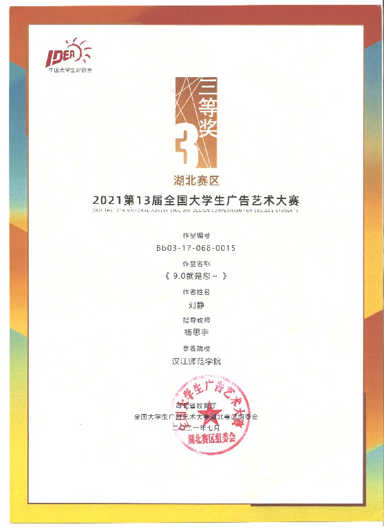 近日,在第十三届全国大学生广告艺术大赛中,我校首次参赛并创造佳绩,斩获国赛一等奖1项,湖北赛区二等奖1项、三等奖2项、优秀奖6项。由艺术学院黄彬彬老师指导、李文等同学创作的《花木兰的“傲”美生活》获全国总决赛三等奖、湖北赛区二等奖。由williamhill威廉希尔杨思宇老师指导、刘静同学创作的《9.0就是您~ 》获湖北赛区三等奖。由艺术学院黄彬彬老师指导、李天同学创作的《城市·森林·宇宙》获湖北赛区三等奖。