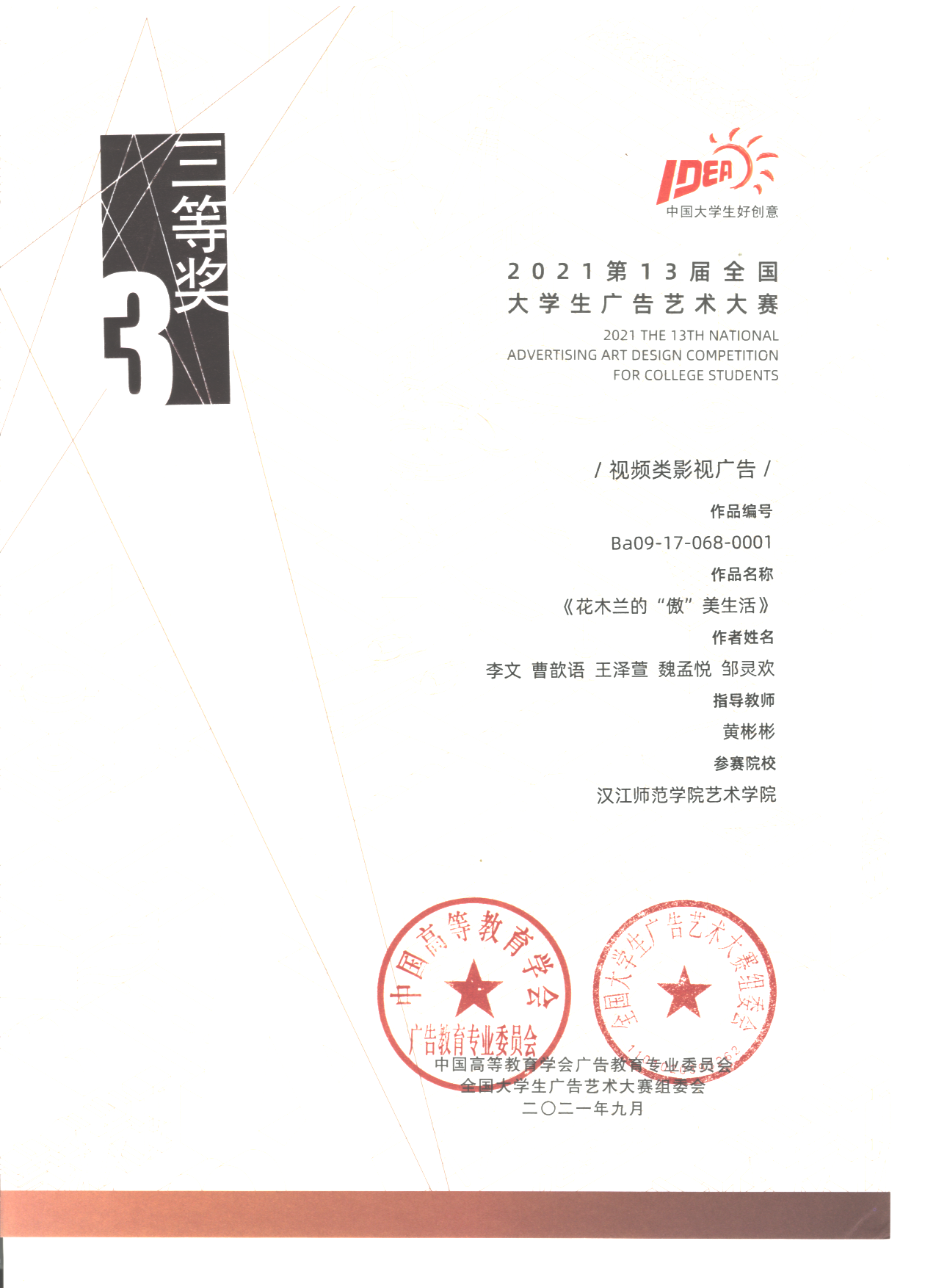 第13届全国大学生广告艺术大赛区获奖名单