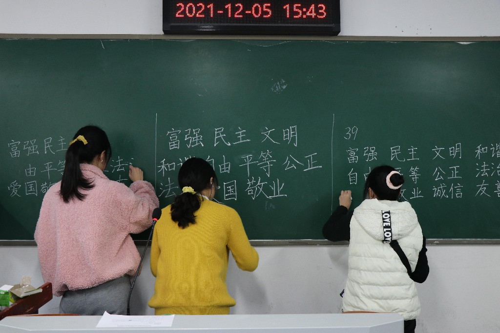 本次大赛历时一个多月,共有初赛和复赛两个阶段,划分粉笔、钢笔、毛笔三个组别,全校学生踊跃参赛,共征集初赛作品1838件,最终551名选手进入决赛。
