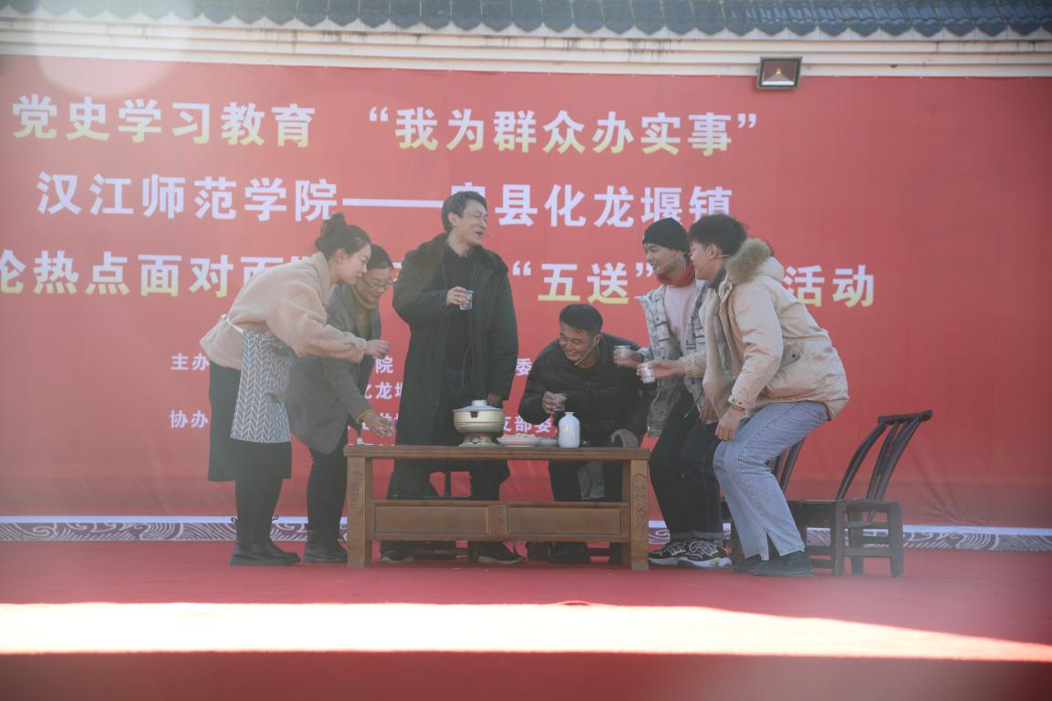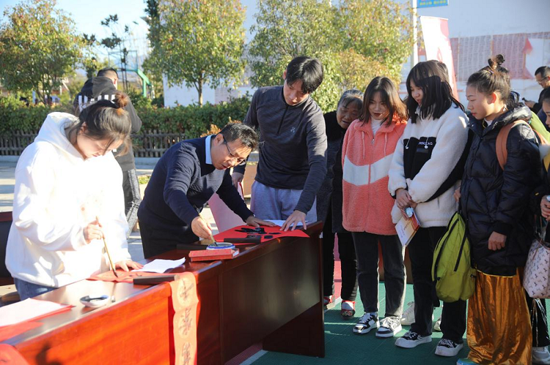 11月30日下午,为深入推进“我为群众办实事”实践活动,我校120多名师生赴“理论热点面对面”示范点房县化龙堰镇化龙村新时代文明实践站开展“送理论、送法律、送技术、送文化、送致富信息”等“五送”惠民活动。williamhill威廉希尔广播电视编导、书法学和网络与新媒体专业师生分别参与“送致富信息”、“送文化”和“送法律”活动,受到民众喜爱。