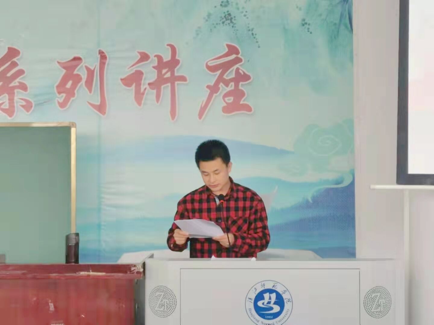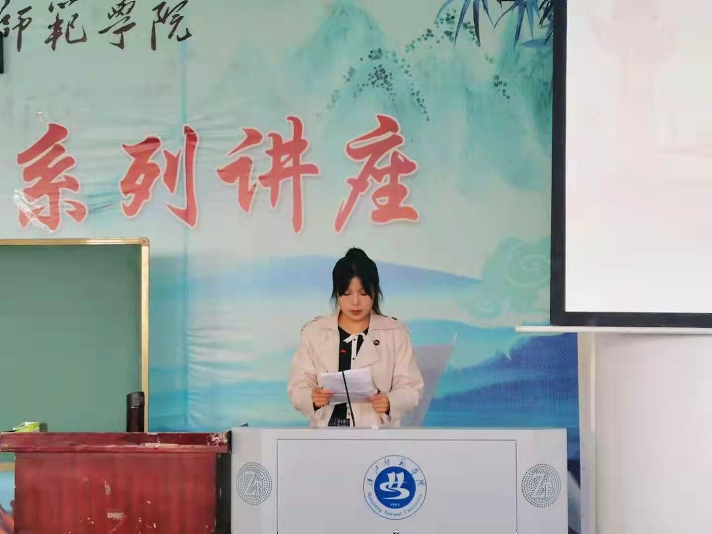 竞聘演讲结束,赵江南和郭成老师对26名团学代表的基本情况进行介绍。在此期间,工作人员分发以及回收票据,由100名选举人进行投票,魏东、杨超进行监票以及后续的筛票,待选出有效票据,再由郑胜男、蔡兆祝计票,得出最终票数。