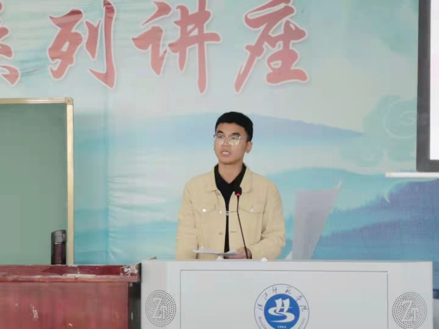 首先,全体起立奏唱国歌,国歌声落下,党总支书记曹弋致词,他指出:本次团学代会不仅是中国选举理念的贯彻,也是各学生代表行使政治权利的最好体现。作为中国共产党领导下的党员、团员要紧跟党的步伐,做合格的“人民子弟兵”,将理论与实践相结合,拥有服务意识,起好带头作用。曹书记对竞选代表不仅表达了期许和鼓励,也告诫各代表无论竞选成功与否,都要不忘初心,不辱使命。