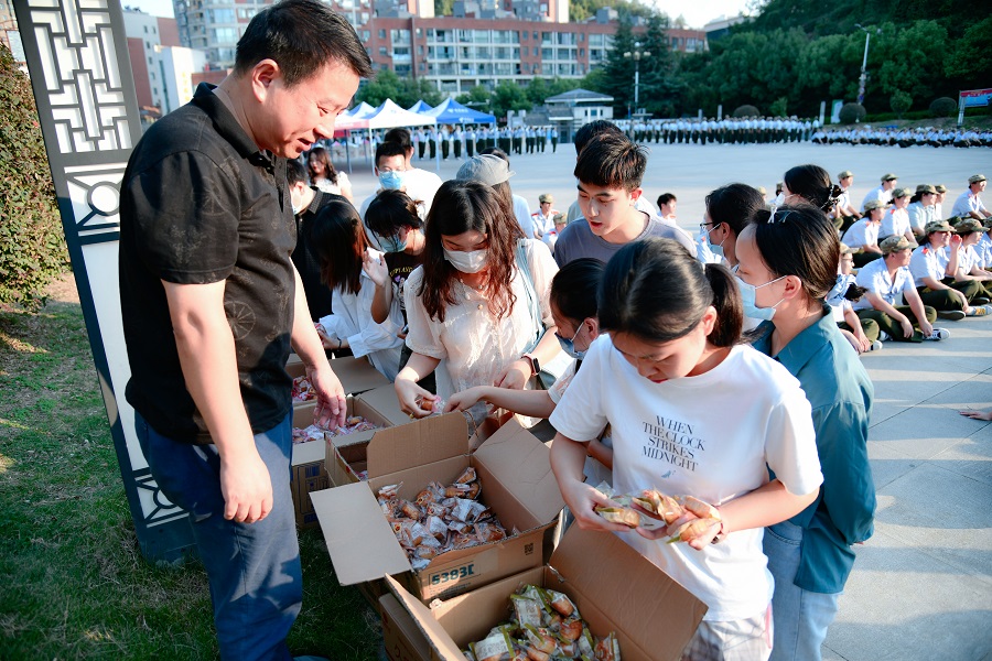 活动现场洋溢着浓浓的节日氛围,老师们希望广大同学们在军训中感悟人生,在蜕变和历练中成为最好的自己;学子们在节日中感悟中华文化、增进家国情怀,在求学路上不辜负亲人老师的期盼、不辜负伟大的时代。同学们纷纷表示,中秋佳节虽然不能与家人,亲朋好友团聚,但是手中的月饼驱散了军训的疲乏,让大家感受到了节日的氛围和学校的关爱。