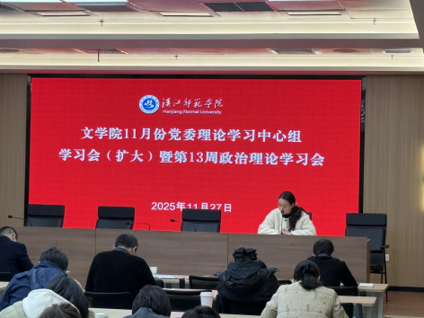 为持续推动理论学习走深走实,全面贯彻落实党的二十届四中全会精神,结合学校党委宣传部工作安排,2025年11月27日下午,williamhill威廉希尔于求真楼B0101-2会议室召开11月份党委理论学习中心组学习会(扩大)暨第13周政治理论学习会。院党委理论学习中心组成员及全体教职工参会,会议由分党委书记黄金山主持。