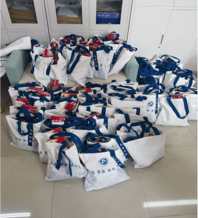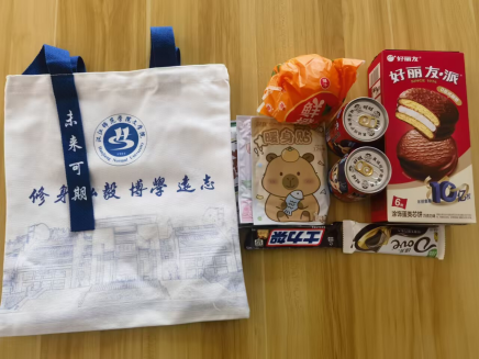 本次发放的考研大礼包坚持实用性和纪念性相统一,每份包含学院定制文创帆布包及备考物资。文创帆布包融合学科特色与文化元素,既满足日常学习需求,又具有纪念意义。物资配备方面,能量补给类包含好丽友派、旺仔牛奶、士力架和优质巧克力,为高强度考试提供能量保障;暖心防护类配备保暖暖宝宝,助力抵御严寒;鲜橙寓意“心想事成、旗开得胜”,为备考增添美好祝愿。